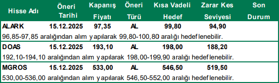 Günlük Hisse Önerileri