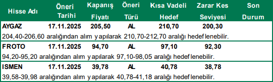 Günlük Hisse Önerileri