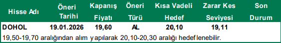 Şeker Yatırım Günlük Hisse Önerileri – (19.01.2026)