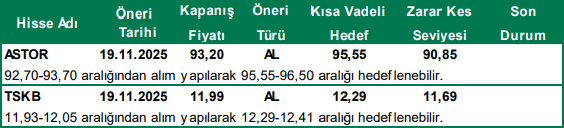 Şeker Yatırım Günlük Hisse Önerileri – (19.11.2025)