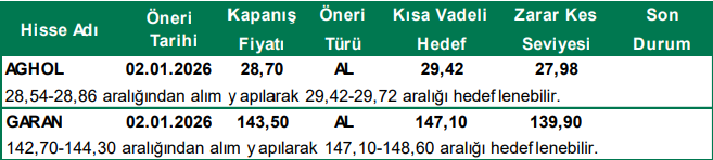 Şeker Yatırım Günlük Hisse Önerileri – (2.01.2026)