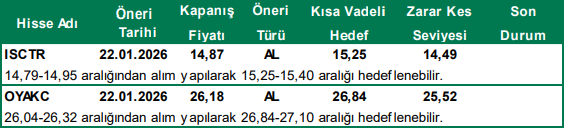İZLE: Alım için hissenin takibe alınmasını gerektiğini ifade etmektedir.