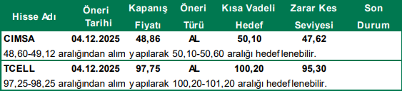 Şeker Yatırım Günlük Hisse Önerileri – (4.12.2025)
