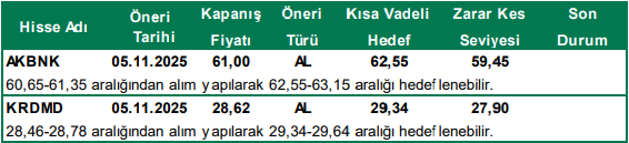 Bu görünüm, endeksin mevcut sıkışma alanından çıkış yönünü belirleyecek kritik eşik olarak önemini koruduğuna işaret etmektedir. Buna karşın 10.800 seviyesi, kısa vadeli bant hareketinin alt sınırını oluştururken, bu seviyenin üzerinde kalındığı sürece pozitif teknik görünümün korunabileceğini düşünüyoruz. Endeksin gün içerisinde 10.800 seviyesine doğru geri çekilmeleri alım fırsatı 11.050 seviyesine doğru yükselişleri ise kar satışı olarak değerlendirilebilir. BIST 100 Endeksinin yeni güne sınırlı pozitif bir seyirle başlangıç yapmasını günün devamında ise dalgalı bir seyir izlemesini bekliyoruz.
