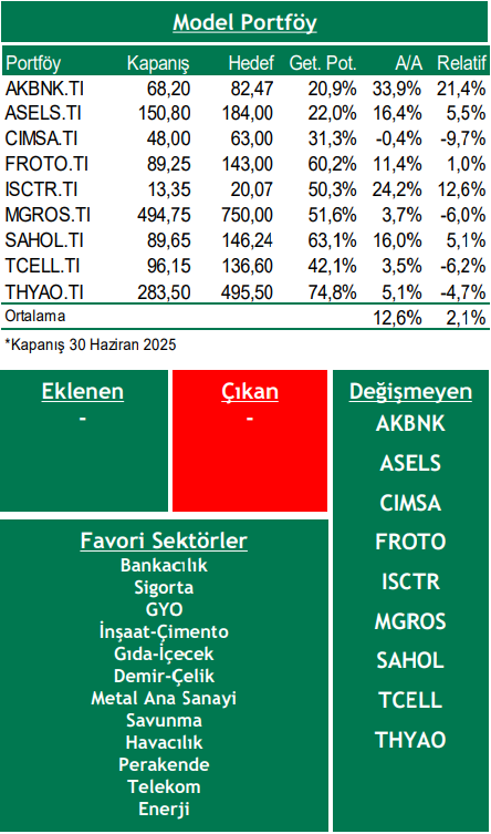 Bu ay model portföyümüzde değişiklik yapmıyoruz.