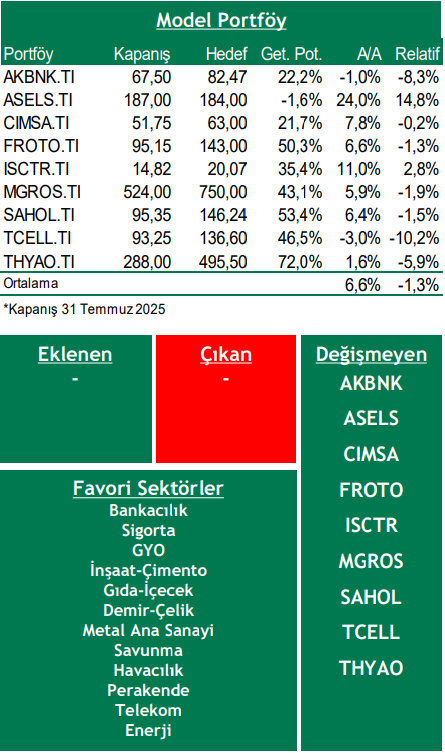 Yukarıda sıralanan dinamiklere bağlı olarak Temmuz ayından itibaren kademeli bir şekilde riskli varlıklara yönelen ilginin Ağustos ayında da devam etmesini ve BİST’in dalgalanma yaşansa da ay genelinde pozitif bir seyir izlemesini bekliyoruz.