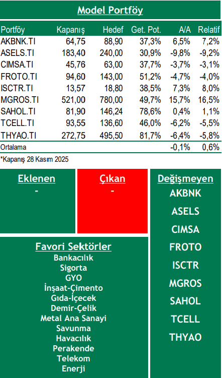 Bu ay model portföyümüzde değişiklik yapmıyoruz.