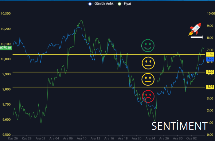 Son yıllarda, yılın ilk günlerinin genellikle pozitif geçtiği görülüyor. Bu eğilimi bu senenin ilk iki gününde de yaşadık. Ancak bundan sonra piyasanın asıl yön arayışına girmesini bekliyoruz. İlk izlenimler pozitif olsa da, sert ve yanıltıcı (fake) hareketlerin sık görülebileceği bir döneme giriyoruz. Bu nedenle Sentiment destek ve direnç seviyelerinin daha yakından takip edilmesi gerekiyor.