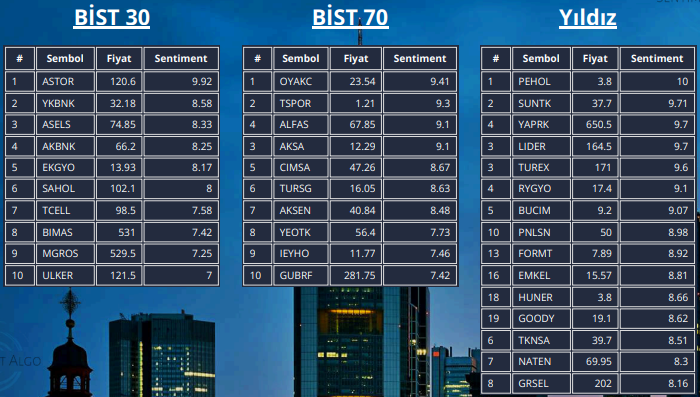 Haftalık Sentiment Puanı En Yüksek Hisseler