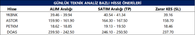 Günlük Teknik Analiz Bazlı Hisse Önerileri