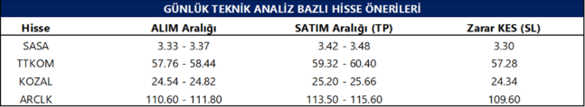 Günlük Teknik Analiz Bazlı Hisse Önerileri