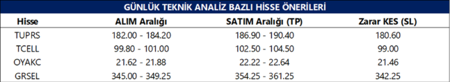 Günlük Teknik Analiz Bazlı Hisse Önerileri