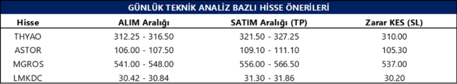 Günlük Teknik Analiz Bazlı Hisse Önerileri