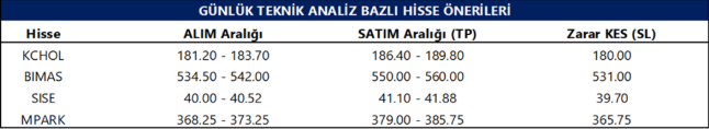 Günlük Teknik Analiz Bazlı Hisse Önerileri