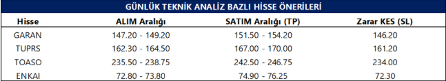 Günlük Teknik Analiz Bazlı Hisse Önerileri