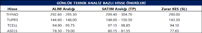 Günlük Teknik Analiz Bazlı Hisse Önerileri