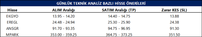 Günlük Teknik Analiz Bazlı Hisse Önerileri