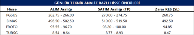 Günlük Teknik Analiz Bazlı Hisse Önerileri