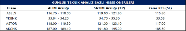 Günlük Teknik Analiz Bazlı Hisse Önerileri
