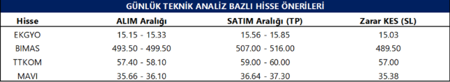 Günlük Teknik Analiz Bazlı Hisse Önerileri