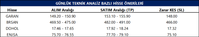 Günlük Teknik Analiz Bazlı Hisse Önerileri