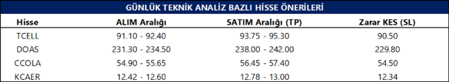 Günlük Teknik Analiz Bazlı Hisse Önerileri