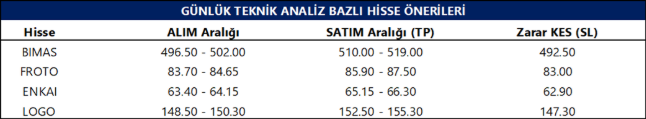 Günlük Teknik Analiz Bazlı Hisse Önerileri