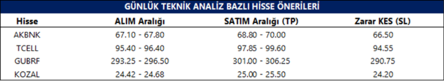 Günlük Teknik Analiz Bazlı Hisse Önerileri