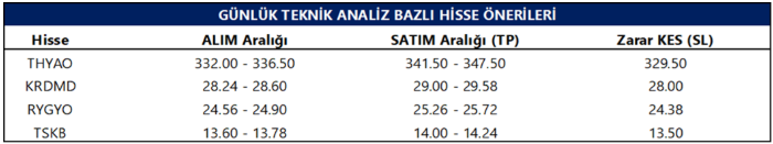 Günlük Teknik Analiz Bazlı Hisse Önerileri