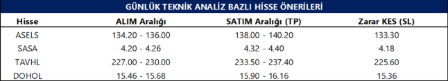 Günlük Teknik Analiz Bazlı Hisse Önerileri