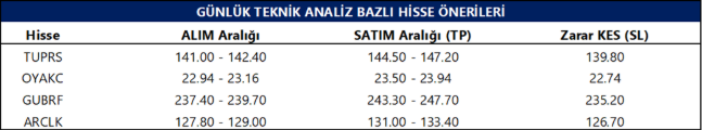 Günlük Teknik Analiz Bazlı Hisse Önerileri