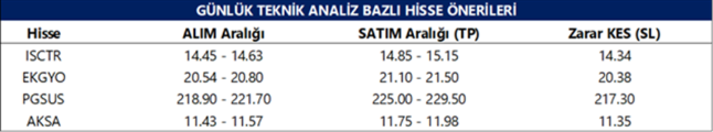 Günlük Teknik Analiz Bazlı Hisse Önerileri