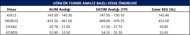 Günlük Teknik Analiz Bazlı Hisse Önerileri