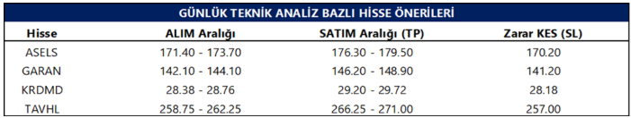Günlük Teknik Analiz Bazlı Hisse Önerileri