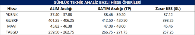 Günlük Teknik Analiz Bazlı Hisse Önerileri