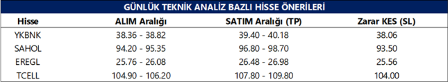 Günlük Teknik Analiz Bazlı Hisse Önerileri