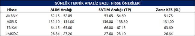 Günlük Teknik Analiz Bazlı Hisse Önerileri