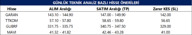 Günlük Teknik Analiz Bazlı Hisse Önerileri