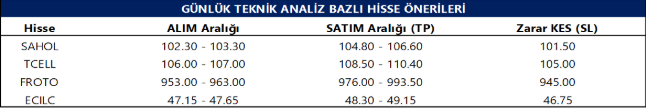 Günlük Teknik Analiz Bazlı Hisse Önerileri