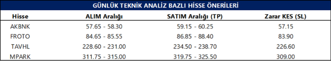 Günlük Teknik Analiz Bazlı Hisse Önerileri
