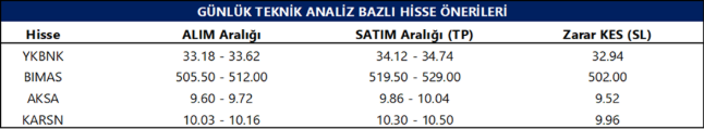 Günlük Teknik Analiz Bazlı Hisse Önerileri