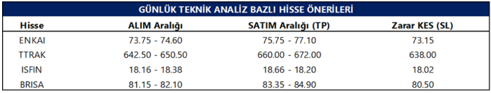 Günlük Teknik Analiz Bazlı Hisse Önerileri