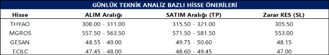 Günlük Teknik Analiz Bazlı Hisse Önerileri