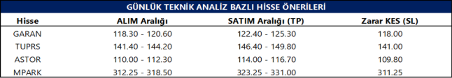 Günlük Teknik Analiz Bazlı Hisse Önerileri