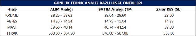 Günlük Teknik Analiz Bazlı Hisse Önerileri