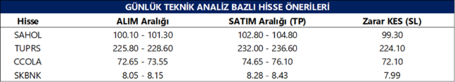 Günlük Teknik Analiz Bazlı Hisse Önerileri