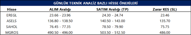 Günlük Teknik Analiz Bazlı Hisse Önerileri