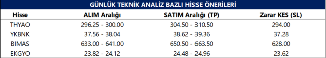 Günlük Teknik Analiz Bazlı Hisse Önerileri