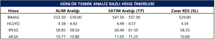 Günlük Teknik Analiz Bazlı Hisse Önerileri