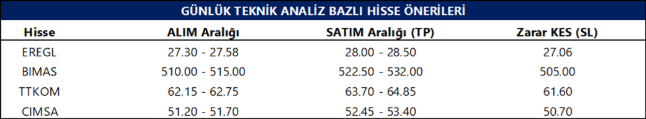 Günlük Teknik Analiz Bazlı Hisse Önerileri